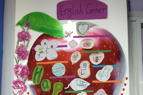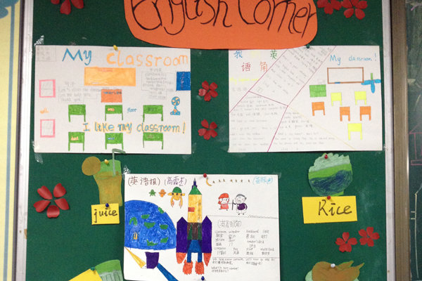现在您无论走进小学部的哪一个班级,哪一间教室,相信吸引你的绝对是孩子们自己的英语角。孩子们自豪的给家长介绍着自己的作品,家长们脸上也全都洋溢着欣慰的笑容。