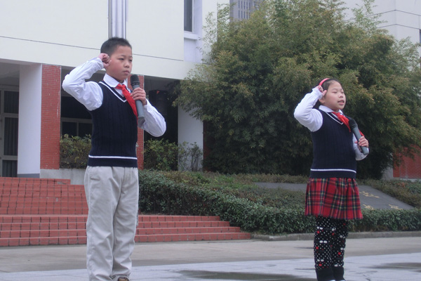 本次升旗仪式由小学部五(4)班主持,小主持人以饱满的精神状态为本次的升旗仪式开了个好头。接下来国旗下的讲话,五(4)班的两位同学以“节约”为本次讲话的主题,他们以生活中的实例及大量的数字向同学们讲述着“节约”的好处,希望同学们从今往后能珍惜生活中的每一滴水、每一粒饭、每一度电——最后,在这两位讲话者的倡议下,全体学生紧握拳头共同宣誓——节约为美德,文明我先行。