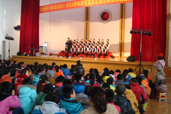 又是一年光阴到,2013年12月24日下午两点,合肥世界外国语学校的大礼堂,欢歌笑语,热闹非凡,尽管室外的温度已是零下,但大礼堂里却是温暖如春。新年新气象,合肥世界外国语学校小学部的元旦汇演暨表彰大会在方仁武主任的新年贺辞中拉开了序幕。
