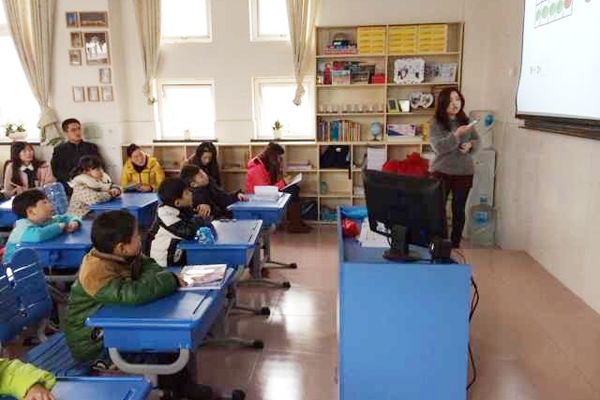 3月4号小学部教师早早的来到了国际班,大家期待已久的数学双语课将要开始了。