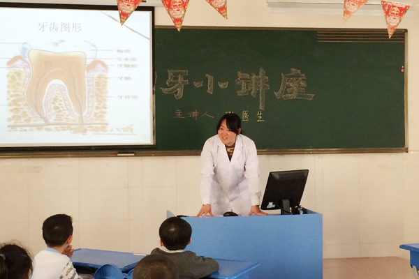 孔医生从三个方面为孩子们普及了护牙知识:一、介绍乳牙和恒牙。在人的一生中,先后会长两次牙齿,首次长出的称为“乳牙”,共二十个。六岁左右,乳牙逐渐脱落,长出“恒牙“,共二十八或三十二颗。恒牙掉落便不会再长。一年级的孩子正处在换牙期,保护牙齿显得尤为重要。