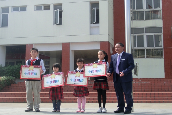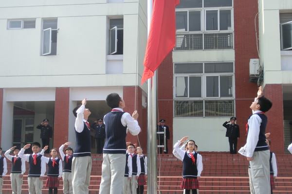 4月14日,小学部全体师生聚集在校礼仪广场举行本学期的第五次升旗仪式。