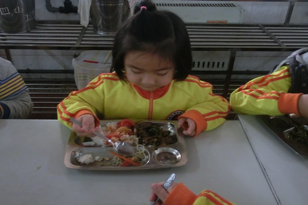幼儿们排着整齐的队伍来到餐厅,韦主任带着他们来到打餐窗口,幼儿园端着餐盘,老师们在一旁小声提醒幼儿小心慢走,注意就餐安全。幼儿们经过这段时间老师们的教育,个个都很遵守纪律,俨然一副小学生的样子。看,他们安静地坐在餐位上,认真地吃着中餐,“谁知盘中餐,粒粒皆辛苦。”老师们在一旁温馨地提醒幼儿们要把饭吃完,珍惜每一粒粮食。
