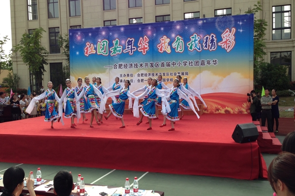 “六一儿童节”前期,“2014年经开区首届社团嘉年华展示活动”在合肥168玫瑰园学校举行。合肥世界外国语学校小学生的“先锋军乐社团”和“春之恋舞蹈社团”参加了本次活动,其中舞蹈社团还参加了开幕式展演,受到现场嘉宾的热烈欢迎。