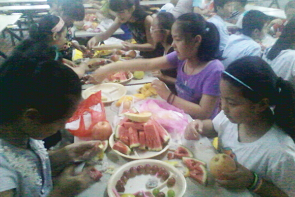 同学们正在做水果拼盘