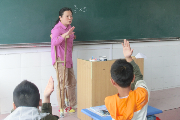 小学部:师爱无疆 拄着拐杖上课的师者