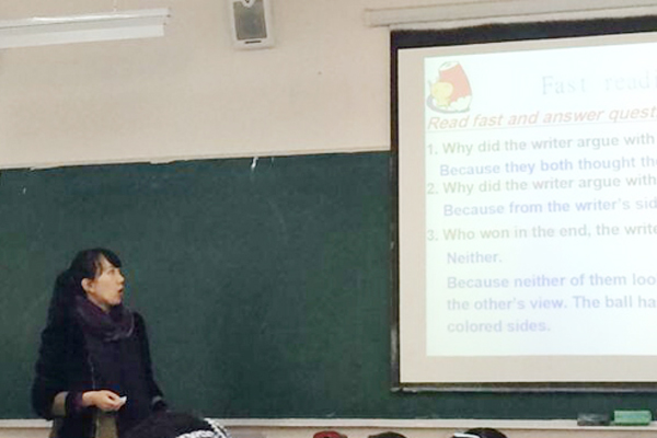 毕业于英国伦敦大学的王冠博老师,首先吸引我的就是她那纯正的发音和精炼的语言。整节阅读课里,我们一直在享受着,有一种听多久都不会觉得累的感觉。在座的每一位英语老师无一不在赞叹不已,课下我们还在讨论着,同时也认识到了自己需要在口语上苦下功夫。