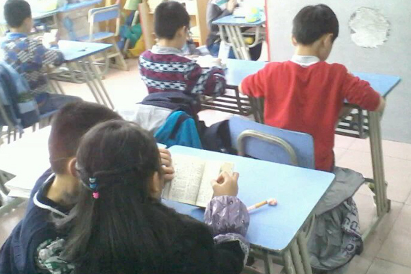 11月14日下午第二节课,小学部四(3)班教室正在进行紧张的查字典比赛。