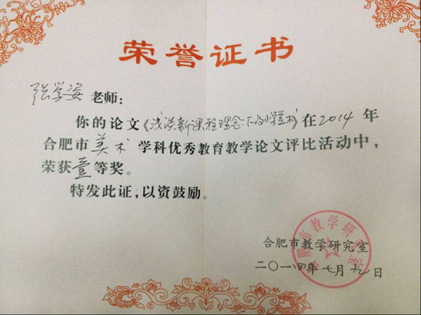本学期在金色的九月中拉开了序幕。这个收获的季节,它不仅为这辛苦劳作的人们呈上丰硕的五谷,更频频传递着小学部师生校内外荣摘桂冠的喜讯。校外,在教育教学论文评比中,综合组张学姿老师荣获合肥市一等奖,英语组邢素丽老师获中国教育学会“绿色课堂”评比论文全国一等奖,教学设计二等奖,吴令萍老师获合肥市教学论文三等奖;在课堂教学实践中,王淼洁老师获经开区课堂教学评比三等奖,张畅老师获2014合经区小学数学“寻找好课”评比活动一等奖;许娜老师获经开区“聚焦课堂实践,打造有效课堂”教学课堂大赛一等奖, 王芬老师获经开区小学数学第五届“聚焦课堂”教学评比一等奖,李小燕老师荣获合经区小学思科综第五届“聚焦课堂实践,打造有效课堂”教学评比思想品德学科一等奖,张畅老师获2014年合肥市中小学教师信息技术教学应用大练兵课堂教学展示活动一等奖;在辅导培养学生特色发展的比赛中,综合组的夏凌老师获亚洲青少年艺术人才第七届“校园之星”育才成果奖,陈少翔老师获亚洲青少年艺术人才第七届“校园之星”育才成果奖及其带领的先锋军乐队荣获经开区社团嘉年华活动评选三等奖,卫然老师获第五届校园文化艺术节舞蹈比赛一等奖和其组织的舞蹈社团荣获经开区社团嘉年华活动评选三等奖,卢茂俊老师获第七届少儿艺术大赛优秀指导老师称号,邵纯纯老师获“中国•白银”第14届PHE国际青少年书画大赛一等奖,陈晓静老师获合肥市“蓝宇杯”英语演讲比赛辅导一等奖,张畅老师获2014年经开区“师德标兵”,所带班级获市“先进集体”称号,杨克军老师所带班级获市“先进班集体”荣誉称号,董红莉和马珺然老师2014年3月获2013年度小学生阅读能力大赛优秀,李扬老师获辅导特长生比赛成果一等奖,小学部雏鹰足球队喜获上一赛季综合评定一等奖。
