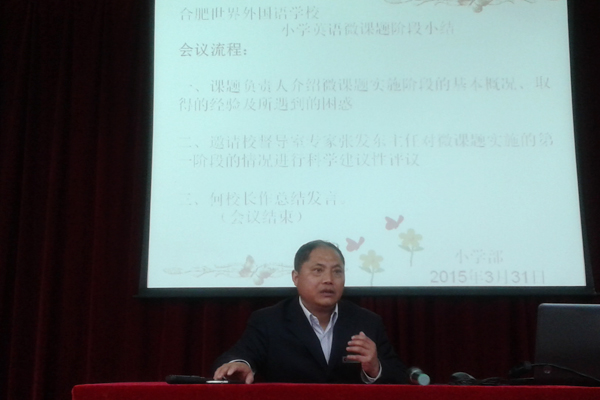 3月31日上午十点,“微课程研究”阶段性总结交流会在我校报告厅召开,小学部方仁武主任主持会议。学校领导、学部领导、学科教研组长、年级组长及首席、骨干教师均参加了此次总结交流会。会上,课题负责人邢素丽老师总结了微课程现阶段研究的主要内容、主要活动、研究成效,也和大家分享了阶段反思和体会。邵忠德校长对这一课题的研究给予了鼓励和肯定,并鼓励我校青年教师们秉承教改精神,不懈努力实践、探索、开拓创新。学部还特别邀请我校督导室专家张发东主任对微课题现阶段的研究总结作科学性评议分析与指导。最后,何全胜副校长做了总结发言,强调课题研究不能游离于课堂,鼓励老师们在课堂实践中不断反思、探索,打造真正高效、有特色的课堂。