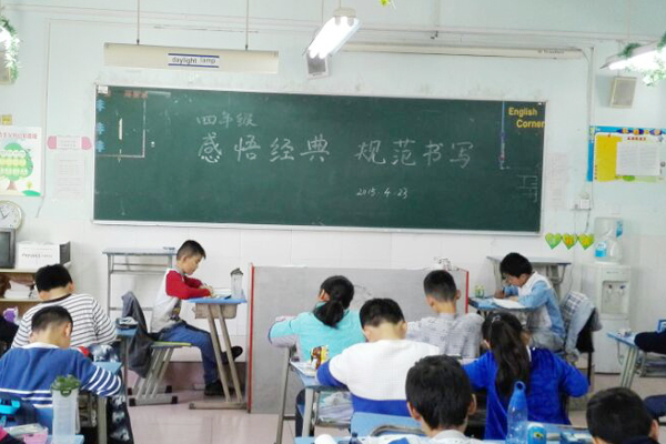 4月23下午,我校小学部四年级组举行了以“感悟经典 规范汉字”为主题的硬笔书法比赛。此次活动的宗旨在于展示学生硬笔书法风采,增强学生写规范字、用规范字的意识,促进学生良好书写习惯的养成,传承传统文化,营造校园文化建设氛围。