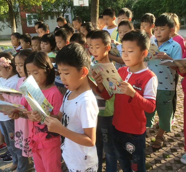 2015年的九月秋意来的早,而9月13日清晨国学二(1)班孩子们走出教室,踏进校园凉亭,开始了一次特殊的晨读。