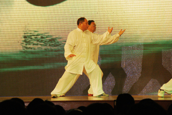 青春飞扬,在炫彩背景的衬托下,初中部七、八年级菁英女子班的舞蹈激情飞扬,活力四射;浪漫的歌伴舞《鸿雁》、各学部教师通力合作的歌曲串烧、教师歌舞等节目让充满活力的世外教师风采展现在学生和家长面前;热情绚丽的民族舞、拉丁舞、街舞、富有中华传统文化的太极表演《高山流水》、我校外教老师与外籍留学生的舞蹈表演……一幅中西交融、魅力四射的世外画卷打动人心。各具特色的民族服装、风情各异的歌舞表演,世外中西文化交汇的魅力动人心魄;《海阔天空》《北京胡同》歌声激昂、曲调雄浑,象征着世外家校和谐友好的节目《爱的家园,感谢有你》热力登场;舞台背景中舞龙奔腾,彩狮雄健,表达了世外师生对未来的美好祝愿。