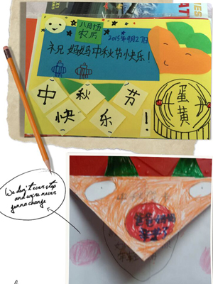 一张贺卡确实不怎么起眼,重要的是孩子们真正开始懂得了感恩和付出,真正明白了父母的不易和用心良苦。借此机会,让我们对自己的父母提前道一声:中秋节快乐!