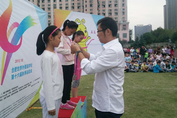 4点左右,所有项目比赛结束,体育场内举行了隆重的颁奖仪式。获取金、银、铜牌的选手们站在高高的领奖台上,美丽的霞光照射在他们的身上,多么美丽而又动人的一刻呀!掌声响起,为他们的拼搏精神而喝彩。5点整,今天的所有活动都结束了,同学们排着整齐的队伍有序地离开了体育场,体育场恢复了平静,干净整洁的场地留给明日上场的高中部的哥哥姐姐们。沐着最后一缕霞光的世外小学生们手拉着手,肩并肩,带着快乐的笑容开始奔向新的明天。比赛结束了,但运动精神没有结束,祝福世外学子健康快乐成长!