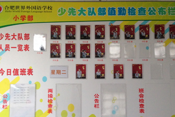 为加强小学部的常规管理,规范学生在校期间的言行举止,培养学生良好的文明行为习惯,营造整洁、美丽、充满活力的校园,促进优良的校风,班风,学风的进一步形成,特制定了少先大队部一日常规值日公布栏。