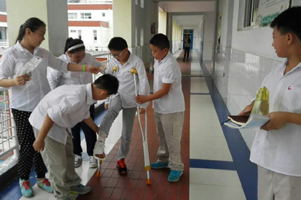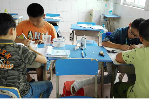 更难能可贵的是,六一班里的所有孩子都凝聚了正能量。他们精心地照料施航的生活和学习,不仅仅有施航所在的小组的帮扶,还有其他自觉、自愿的学生抢着帮施航。同时,每天中午,我们授课老师给施航单独辅导课程时,总有几位学生主动要来陪施航一起学习,并为他倒水,洗碗,扶他上厕所……