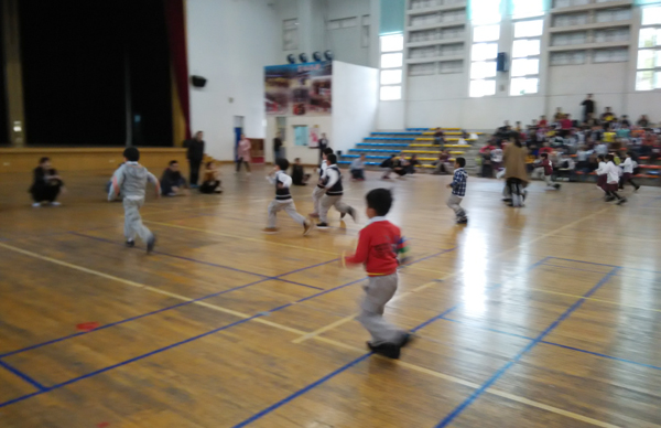 为了让家长更好地了解学生在学校的学习和生活情况,增进家校合作和交流,10月30日下午我们一年级两个合肥班的学生和家长齐聚体育馆,如期举行了别开生面的“大手牵小手”亲子活动。