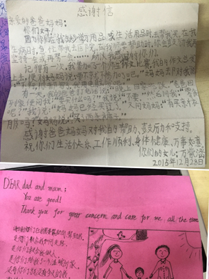 感恩,是这个世界上最美好的词语,常怀感恩之心,生活便会更加美好。感恩父母,因为父母给了我们生命,抚育我们长大成人,为我们付出了一辈子的心血。从呱呱坠地到咿呀学语,从入学到升学乃至长大,是父母无私的关爱陪伴着我们一路成长。这封来自孩子们亲手所写的感谢信应该是这个节日里最美好的礼物,也是这个冬日里最温暖的一抹阳光。我为孩子们的成长感到无比欣慰!孩子们,是你们教会了我感恩!借此,我也祝愿所有的父母事事顺心,生活安康!