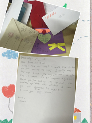 在这个节日氛围浓厚的季节里,世外校园格外的热闹,每间教室里布置的分外喜庆。孩子们也异常激动,也许他们正等待着各种礼物,或来自父母,或来自老师。平安夜里,孩子们收到礼物的那一刻,脸上洋溢着满足的笑容,与此同时,我不禁想到,孩子们能给父母怎样的礼物呢?