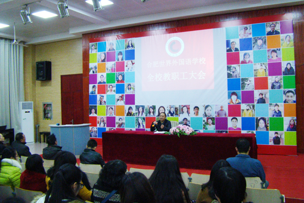 逢盛世春风化雨品学并重十五载豪情育桃李,享太平百年树人薪火相传新起点羊年展宏图。2月27日下午三点整,带着新春的喜庆,我校全体教职工欢聚阶梯教室,召开新学期教职工大会。会议由校办主任孟鸣主持,邵忠德校长在会议上作了重要讲话。