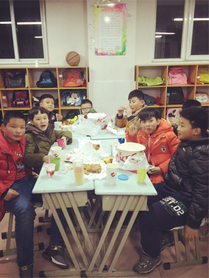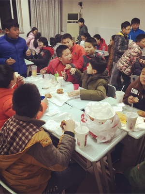 猜完了灯谜,我们的元宵节活动才算真正进入高潮。外地班的孩子很长时间才能回家一次,他们和老师相处的时间有时候远远超过父母,说到不想家,那是假话,但是我们的班主任们及科任老师们都在积极努力地改变这种情况,每个班主任都是孩子们的爸爸妈妈,他们为孩子们准备了丰盛的节日大餐,肯德基全家桶来十个,好吃的水果来几箱,孩子们那兴奋的尖叫声在班级回荡。俗话说正月十五闹元宵,元宵节的夜晚怎么能没有元宵呢?班主任们各显神通,从家里搬来了电磁炉和大口的蒸锅,元宵当然要买孩子们最爱吃的水果味的。咕嘟咕嘟的开水声和孩子们愉快的笑声交织在一起,成了这个夜晚最美妙的旋律。可口的汤圆排着整齐的队伍跃入水中,孩子们看得心痒难耐,恨不得马上吃一口解解馋,笑容荡漾在他们天真的脸上,我知道,快乐是藏不住的。