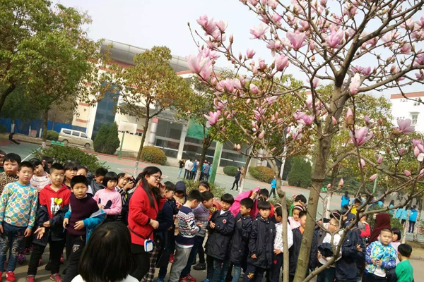 春天的和煦阳光吹满大地,紫荆、海棠、桃花都绽放在世外的每个角落。春天的儿童挂满笑容,荡漾的笑声传遍校园的上空。二年级的群体班主任和语文老师组织孩子们来和春天约会。带上记录本,提上轻灵灵的脚步,漫步在花海和绿丛之中。一双双渴望的眼睛,一个个鲜活的生命,一处处生机的花丛,共同成为了校园里最美的风景。