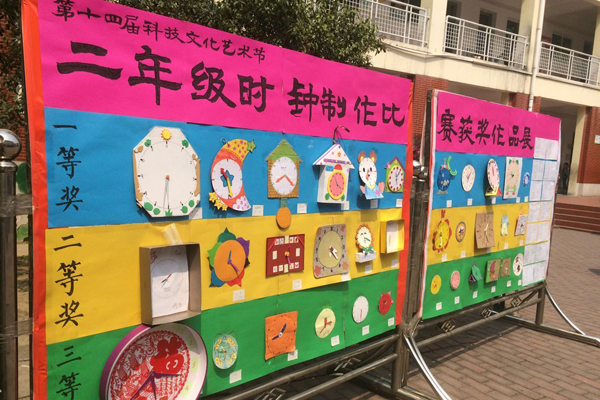 2016年3月24日,世界外国语学校第14届科技文化艺术节二年级的时钟比赛开始了,经过一周时间的角逐,36幅时钟作品获得奖项,14篇时钟制作记录登上光荣榜。校园里萦绕着快乐的笑声!