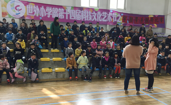 2016年3月22日,阳光明媚,春暖花开,世外小学部一年级组全体学生和老师在组长许娜老师的组织下汇聚一堂,为迎接世外第十四届科技文化艺术节开展了穿鞋带系鞋带比赛。