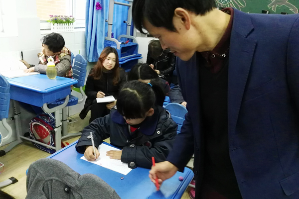 课上,孙老师老师紧凑的教学环节以及轻松愉快的教学方式给大家留下了深刻的印象。孙敦辉老师在课堂上一笔一画认认真真地给学生范写,并将行笔的过程与运笔的方法清晰而美观地展现在学生面前。让学生能十分清楚地看到教师书写时的提、按、顿、挫,以及在方格里占的位置。这样的示范,不仅可以使抽象的起笔、收笔等过程直观化,静态的内容动态化,使学生看得更为清晰,感受更为完整,易于理解笔画的形态。孙敦辉老师及时点拨书写的注意点,纠正书写过程中存在的问题,及时提醒学生注意写字的姿势。表扬有进步之处,大大激发了学生的书写热情。
