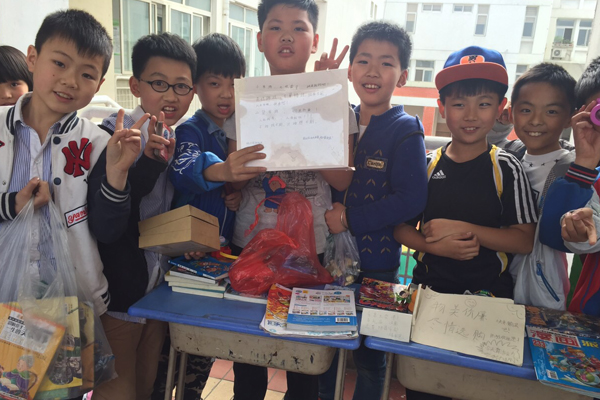 那天下午,我一进入教学楼就见二层连廊里人山人海、热闹非凡。同学们都早早的搬出了各自的课桌,把要拍卖的图书、玩具等物品都整齐地摆放在桌上,各自都贴上了宣传标语,有的写:物美价廉,欢迎选购;有的写:欢迎光临;有的画上美丽的图案写着:开业了,欢迎惠顾……总之大家都在迫不及待的等待着跳蚤市场的开始。我连忙找到和我一组的杨俊杰、梅啸宇一起把桌子摆好,拿出事先准备好的标语牌,挂在桌子上,上面写着:价格公道,物有所值。摆好玩具和图书,激动的等待着。。。。