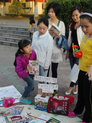 活动发起之时,就受到了孩子们的热烈响应,活动当天,在学校的安排以及班主任老师的精心指导下,各“业主”将各自的摊位设计得各具特色:有的打出了“买一送一”的广告,有的打出了“等你来抽奖”的广告牌……商品琳琅满目,各式各样:品种丰富的书籍,精美可爱的小饰品,实用的文具,美味可口的食品,做工精美的玩具……这些创意深深吸引了“顾客”们的眼球,“顾客”们都翘首以待,随时准备“出击”。