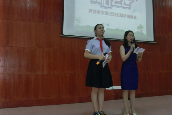 一本精美的画册缓缓打开,师生及家长们欣赏了学部为毕业生精心制作的毕业视频,视频再现了同学们在世外小学学习生活的点点滴滴。同学们用心地看着,会场是如此的安静,细数这六年的点点滴滴,眼中不禁溢满了泪水。陪伴孩子们六年的班主任上来了,他们用一首诗歌为孩子们践行,告诉孩子们,放心去飞吧!美好的未来在召唤着你,爸爸妈妈也来了,他们用歌声告诉孩子们,放心飞吧,我们永远是你坚强的后盾。