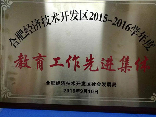 2016年9月9日下午3点,在由合肥市经开区社会发展局组织的庆祝第32个教师节文艺汇演节目中,小学部数学组被评为2015-2016学年度教育工作先进集体,王芬老师为代表接受了颁奖。这是我们全体数学老师共同努力奋斗的结果,小学数学组是一个团结进取,协作,朝气的团体,组内一人有困难,大家一起帮助他,一起想办法,共同面对困难,共同进步!