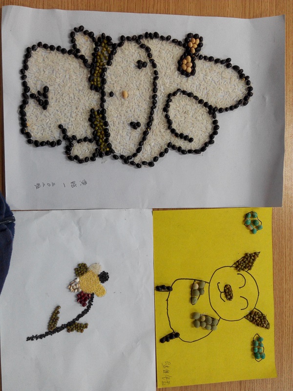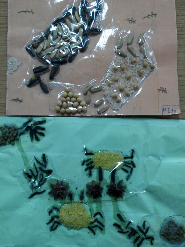 这不仅是一种思维的创造,更是检验巧手的一项考验。有的学生在卡纸上倒了太多的胶水,以至于将一些杂物也粘在画上取不下来了。而有的学生事先没有好好构思,粘完的画面大家都看不出来画的是什么内容。第一次大家几乎均以失败而告终。