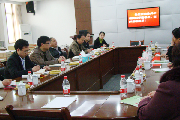 2015年3月29日,徐州华顿国际学校冯泽松副校长率访问团来我校访问,邵忠德校长热情接待了来宾。