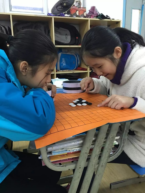 课外活动下棋时的认真。