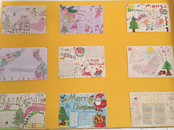 活动中,各年级的英语老师通过班会等形式让学生了解圣诞节的由来、“圣诞老人”等圣诞小常识以及西方风俗习惯等,增强学生对西方文化艺术、民俗风情的了解和兴趣。接着举办感恩父母、感恩老师、感恩同伴等手抄报活动,深化感恩教育。同时还开展“圣诞故事大家讲”、“制作贺卡送祝福”等活动,同学们在活动中感受到了圣诞节日的欢乐,同时也增长了知识,增进了友谊,同学们了解西风土人情,感受西方文化的魅力,更进一步了解了中西方国家的文化的差别。