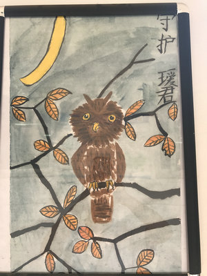 中国画渊源流长,有着辉煌灿烂的艺术成就,具有独特的审美方式,是中国文化史上的文化瑰宝。它注重内心追求,追求一种宁静致远、天人合一。今天的书画展主题是:“收获”,这既是对孩子一年收获的鼓励,也是画作作品的内容。看那一个个笑靥的石榴,或是张开了大嘴哈哈大笑,或是羞答答的红了脸。孩子们满脸钦佩的注视着这幅画,笑着说这不就是秋天校园里的石榴嘛。还有那秋夜里的猫头鹰,秋日下的金桂……这场书画展更是对全体国学班孩子们的鼓励,希望在这场活动后的孩子们都受之鼓舞,竭尽全力,潜心学书画。