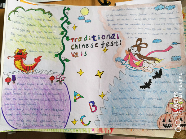 此次手抄报活动不仅增长了文化知识,也大大提高对学习英语的兴趣,达到“一举两得”的效果。
