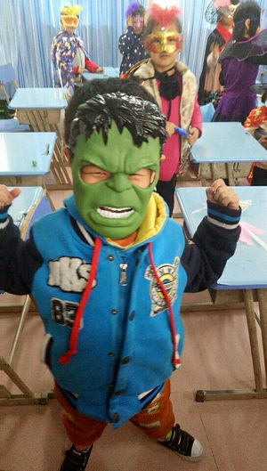 惊险刺激的万圣节到了,人们为了躲避鬼怪和庆祝秋天的丰收会举办各项万圣节庆祝活动。今天我们英语组在学校也进行了万圣节主题活动。爸爸妈妈,爷爷奶奶特别用心,很早就为孩子们准备好所需要的奇装异服,一到下午孩子们打扮得奇形怪状来到班级准备今天的狂欢。同学们一改往日的装扮,戴上精美面具变成了巫婆,魔鬼,海盗,怪兽,公主,海王……真是无所不有!