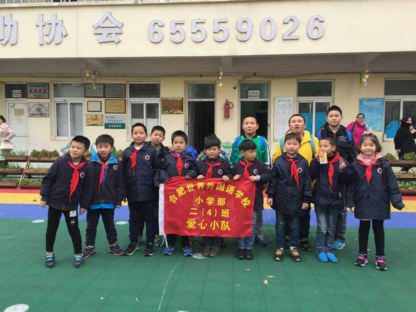2017年11月18日下午,在老师们的关心和支持下,合肥世界外国语学校小学部二(4)班爱心小队的黄鸣东,吕子寒,陈俊贤,吴梓轩,陈相旭,赵鑫菏,任雅琦,丁文惠8名同学来到合肥春芽残疾人互助协会,和在这里康复的特殊儿童一起开展融合活动。