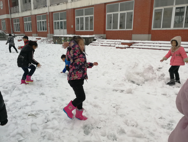 我们一年级组的老师们更是时刻为孩子们牵动着一颗心,考虑到一年级小朋友年龄小,又是第一次看到这么大的雪,一个个兴奋地不得了,老师们丝毫不敢放松。既怕他们摔着,又怕他们冻着,家比较近的小朋友接回家了,为了照顾好在校孩子的生活与学习,在年级组长刘培蕾老师的带领下,各班给孩子们买了奶茶,让他们在寒冷的冬天可以开开心心、热热乎乎。刘老师还组织孩子们去雪地里打雪仗、堆雪人,让孩子们感受下雪天的快乐。看着孩子们一个个像快乐的小鸟飞翔在雪地里,叽叽喳喳,可爱极了!各班的生活老师们也是费尽了心思,每天给孩子们的鞋子用吹风机吹热乎再让孩子们穿,把他们的裤子晚上都挂在空调下面,第二天起来都是热热乎乎的。