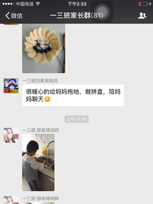 每年五月份的第二个星期日都是“母亲节”,为了感恩母亲,我们一三班组织开展了以“爱在五月感恩母亲”为主题的系列活动,引导学生了解母爱的伟大,并用真心和行动来回报母亲。我给孩子们布置了三项活动内容:1.和妈妈谈谈心;2.给妈妈做一张贺卡;3.给妈妈做件力所能及的事。周末回家后,我从家长群里发来的照片和视频感受到了浓浓的爱意。孩子们根据我布置的行动方案,开展了感恩活动,将温馨的话语,体贴的行动等献给了最伟大的母亲。同时他们也用自己喜欢的方式表达了对母亲的爱;做家务啊、送贺卡啊,还有的用自己的零花钱买了鲜花送给妈妈。