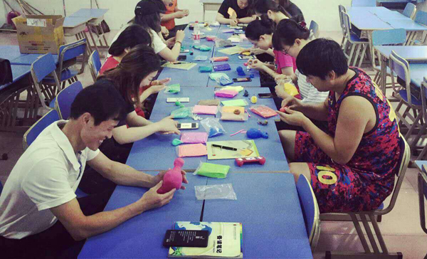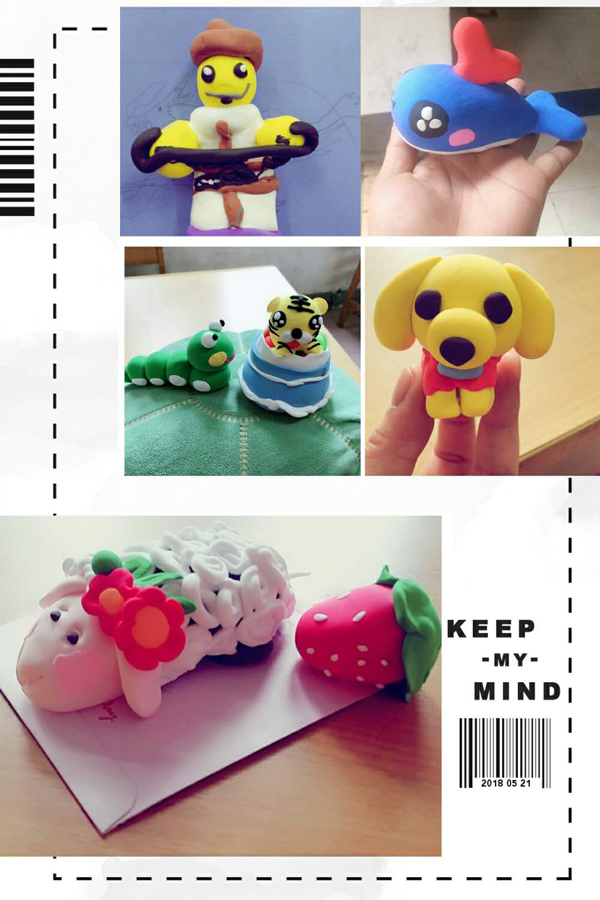 活动现场,丁老师为我们讲解了粘土特性和制作技法,然后给每位老师分发黏土,让其尽情发挥自己的想象力, 用五颜六色的黏土捏出自己所想要的形状与造型。活动室中一直充满着欢声笑语。