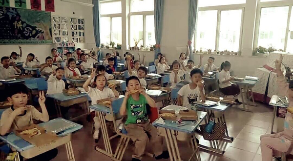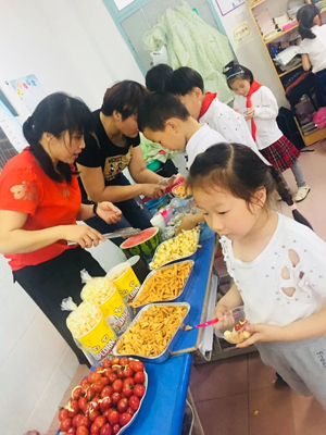 一年级一班还特意用会餐的形式来迎接小学阶段的第一个“六一”,桌子上摆满了老师准备的美食,大家一起举杯,欢度。