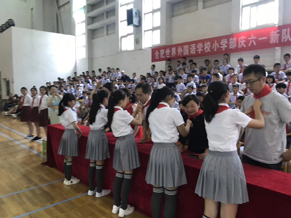 2018年5月31日下午,合肥世界外国语学校小学部举行了新队员入队仪式。