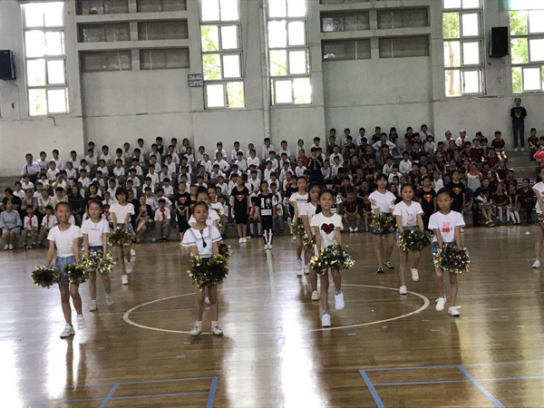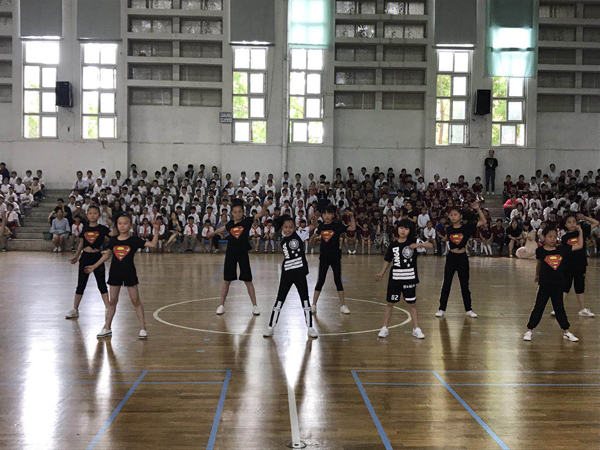 入队仪式结束后,是小学部社团表演,先是女生的健美操表演,每一个音符,第一个动作,都展现了现代小学生的青春活力;第二项表演是民族舞,又为所有人展现了少女阴柔淑婉之美;最激动人心的要属小学足球队对抗教师队,没想到,小小少年们面对比自己高出许多,健壮许多,球技高超许多的教师们,没有半点胆怯,积极拼抢,快速退防,不放过每一次射门的机会,在教师队领先的情况下也没有丝毫气馁,最终以6:5的微弱优势结束了比赛。