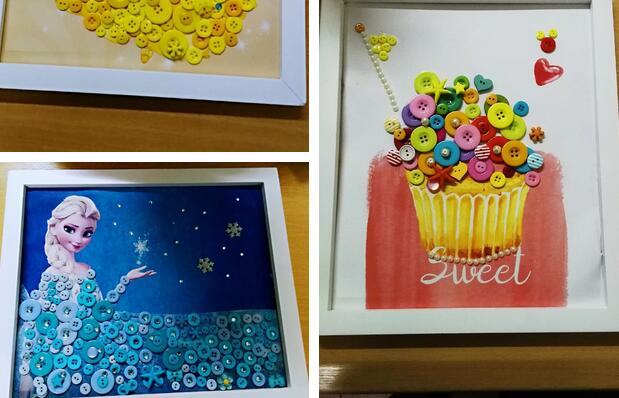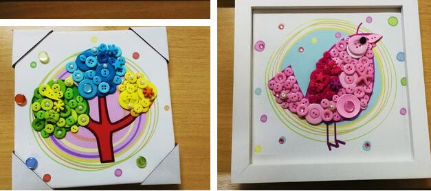纽扣画,顾名思义,是把色彩缤纷的纽扣和装饰图案相结合的一种创作,培养学生的动手能力和创新意识。纽扣画有助于学生视力和动作的发展,促使学生认知能力、观察力、记忆力、想象力和创造力的提高,还可以培养学生的智能和悟性!本学期,我们二(4)班开展了“创意纽扣画”手工制作活动。