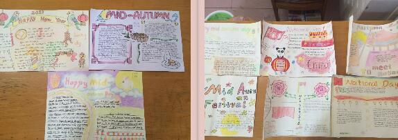为了丰富学生日常的学习生活,激发英语学习兴趣,小学部英语组组织了一场手抄报比赛。手抄报主题是关于中秋节和国庆节,要求学生围绕主题展开想象,用彩笔绘画出心中的美好景象。